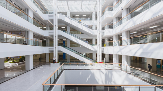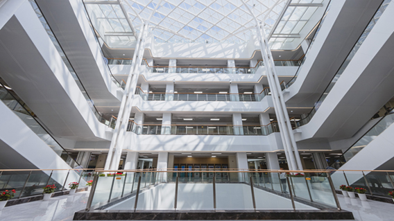 工程难点:在整个项目施工过程中,精细化质量过程控制与管理,注重前期策划工作,在开展质量例会的基础上,开展各类策划、交底、培训40余场。多次邀请各级专家进行现场指导,全面提升管理人员创优意识,持续强化过程一次成优。开工伊始,即明确创“鲁班奖”为质量目标。项目积极开展各层级创优策划,并在设计施工阶段均运用BIM技术优化提升。实行标准化样板制度指导现场施工。对关键工序、关键部位隐蔽工程实施举牌验收,实现质量责任可追溯。屋面坡度坡向正确,防滑砖地面排砖合理,分隔缝分布均匀,接缝顺直,排水通畅,泛水做法精致。外墙立面线条丰富,立体感强,造型美观。石材分格缝对缝整齐,分隔缝宽窄一致、色泽统一。玻璃门窗胶封缝满均匀,幕墙物理四性、现场两性及节能性能均符合要求。