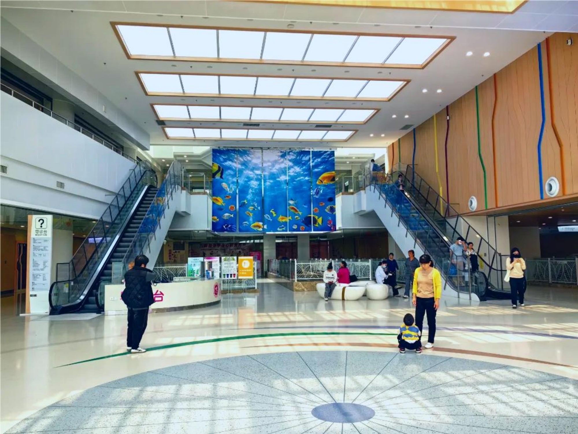 以无伸缩缝工艺打造出超500m的伞形图案环氧水磨石地面。