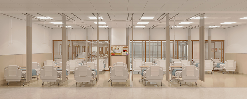 工业化赋能,重塑建造方式。项目的根本性难点在于如何高效、高质量完成复杂医疗空间建造。通过EPC工程总承包模式与装配式建造技术的深度协同,项目成功创新建立了医疗建筑“六化”精装修标准体系(设计标准化、生产工业化、施工装配化、管理信息化、运维智能化、更新便捷化)。这种深度融合有效解决了传统建造模式在效率、精度与协同上的痛点,为项目克服工期紧、专业协调难、现场作业环境复杂等挑战提供了革命性方案,最终铸就了一个可复制、可推广的医疗建筑工业化转型样板。
