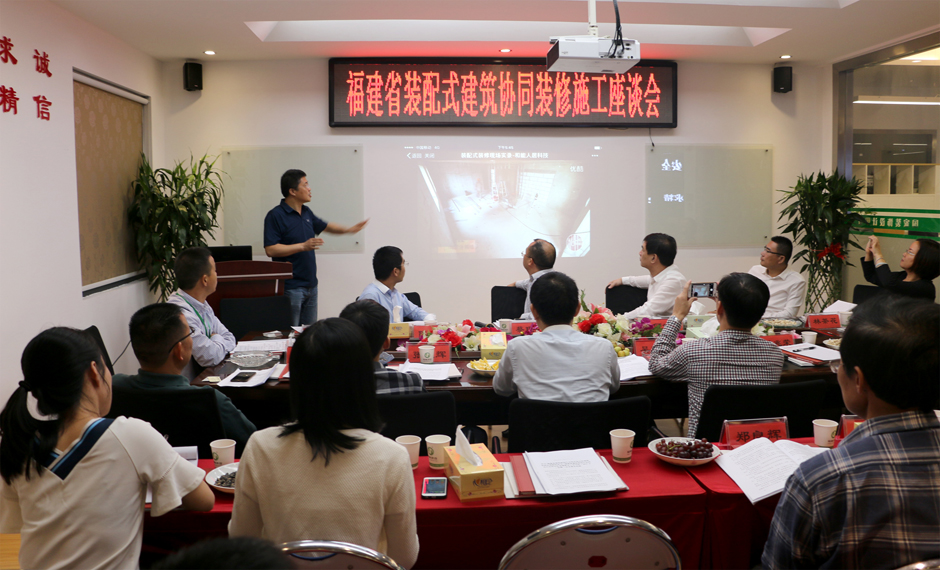 本次会议分为两部分,首先进行的是福建省建筑装饰行业地方标准体系研究推进会;而后进行的是福建省装配式建筑协同施工座谈会。