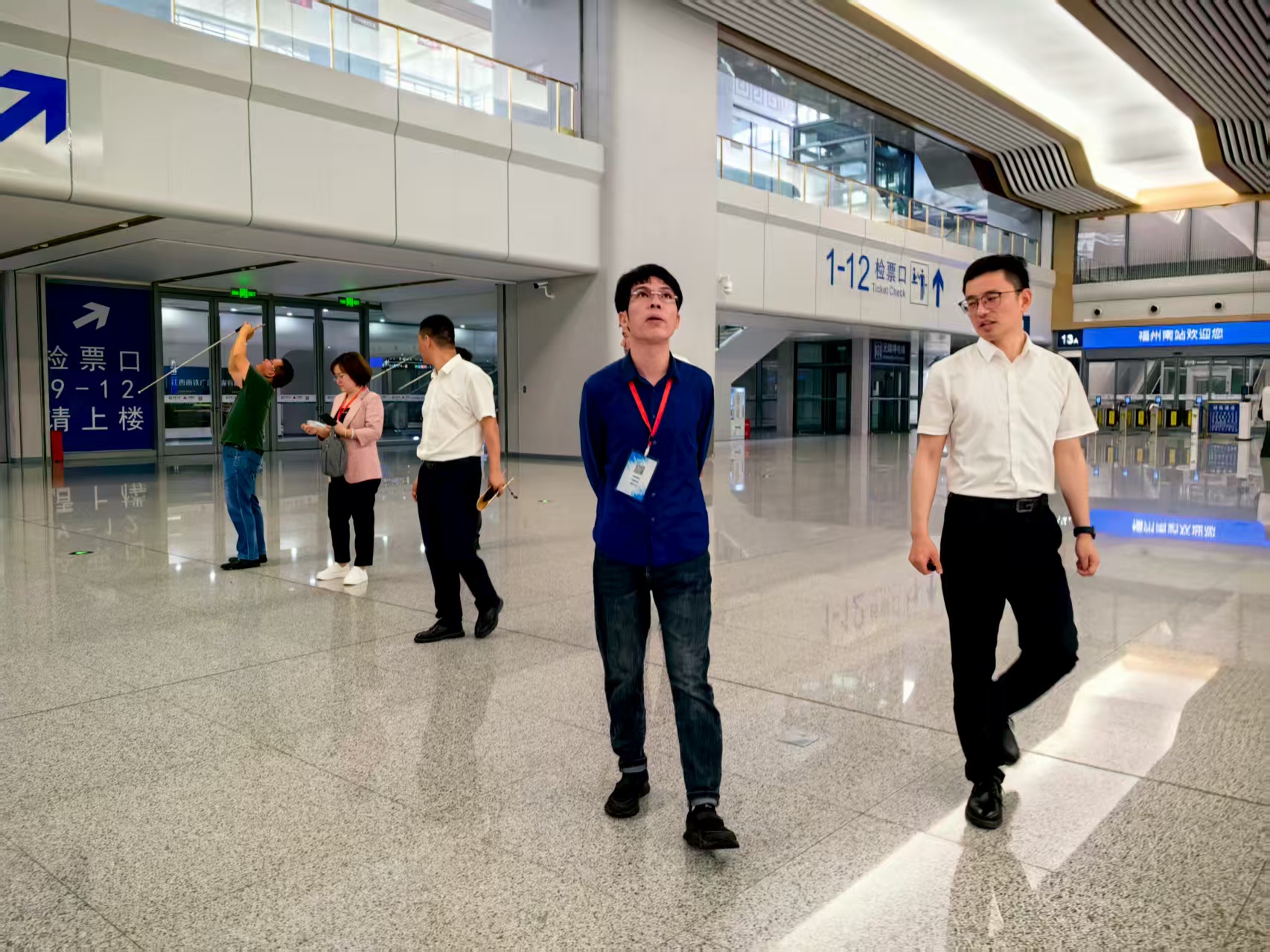2024年4月22日,福建省建筑装饰行业协会组织行业专家赴福州南站开展装饰工程项目现场考察交流活动。本次活动以“聚焦交通枢纽装饰工程,推动行业技术创新与品质提升”为主题,通过实地观摩与专题研讨,深入探讨大型公共建筑装饰工程的先进理念与实施经验。