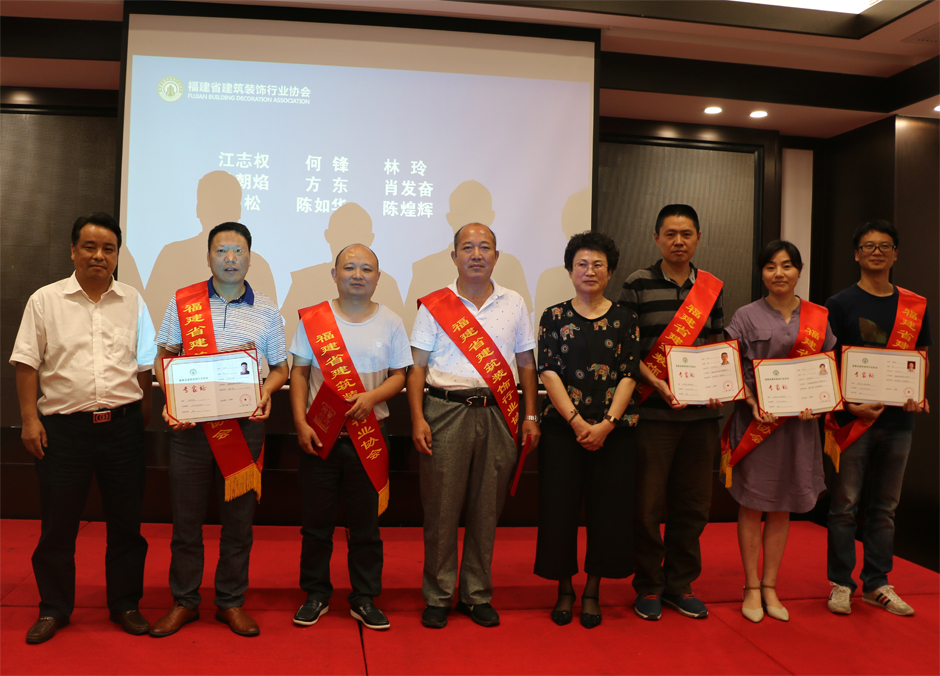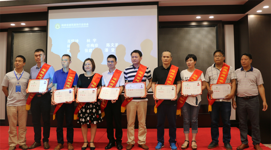 在会议下半场,举行“福建省建筑装饰行业协会专家颁证仪式”,对入选福建省建筑装饰行业专家库的专家披上绶带、颁发专家证。