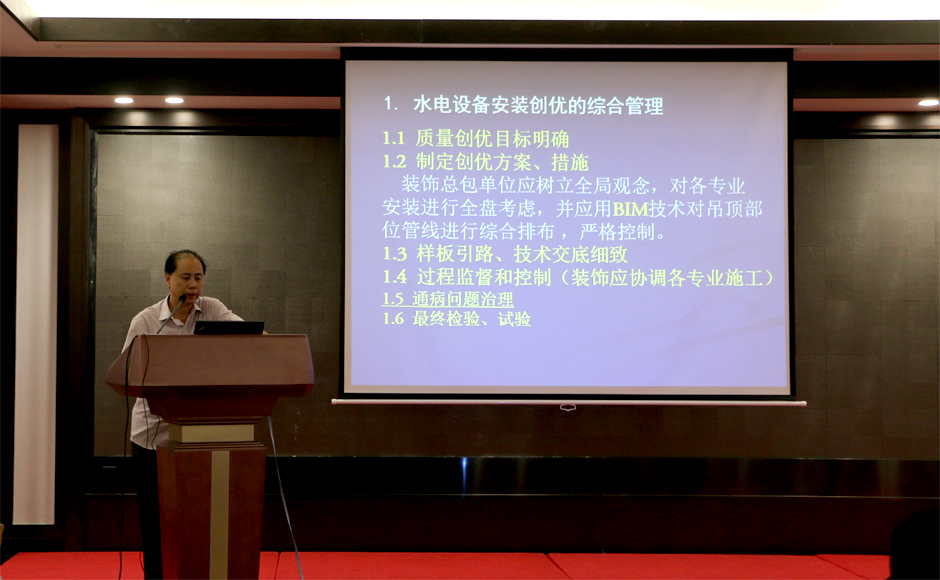 接着,针对我们省工程项目的水电安装质量与安全这一弱项。我省水电安装权威、资深专家,省住建厅系统经常邀请授课的高级专家杨仁光高工,为我们上了一堂生动精彩的课,既有理论知识,又有实践经验,有图有真相,有案例有解决方案,从创优创精品的要求出发,具体分析需要创优企业水电安装部分所要达到的质量要求,分析企业可采取的组织、技术措施。直击要点的归纳总结分享,给现场的听众带来耳目一新的技术交流。