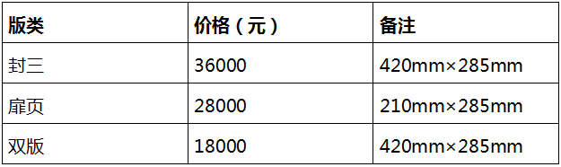 (注:特殊参与形式封面、封底等来电咨询)