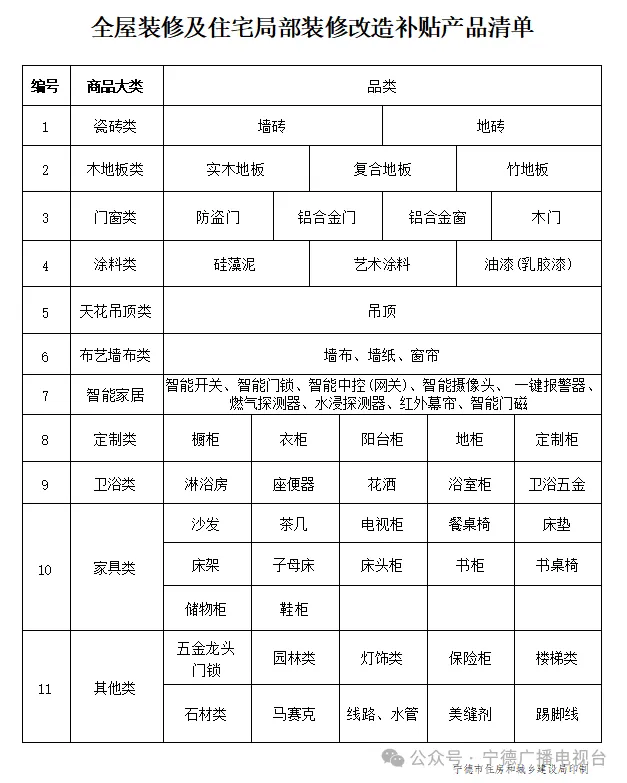 为推动家装消费品焕新,促进住房全屋装修、局部装修改造所用物品和材料的消费,提升市民居住品质,让群众得到实惠,结合宁德实际,制定本活动方案。具体活动内容如下: