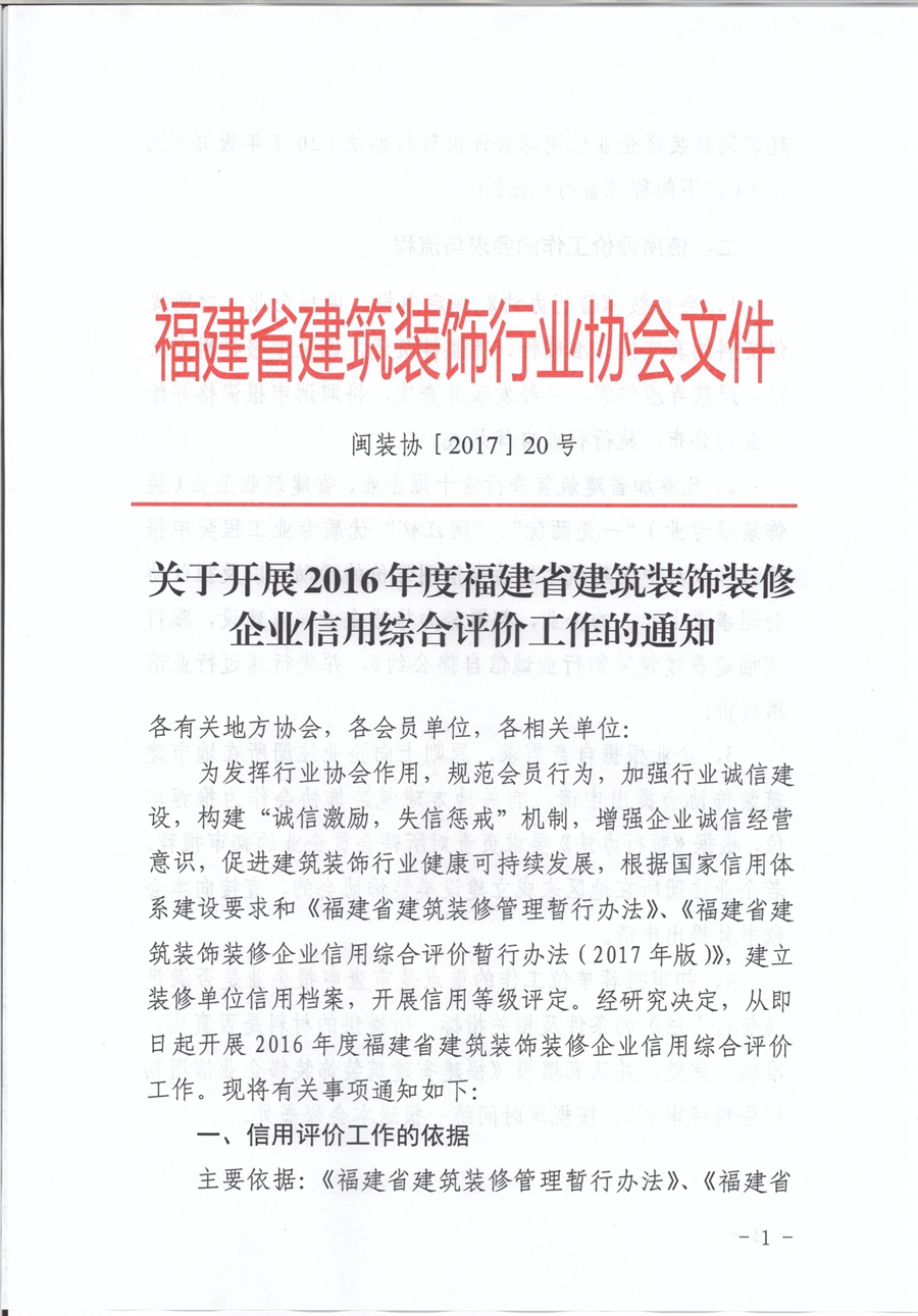 关于开展2016年度福建省建筑装饰装修企业信用综合评价工作的通知