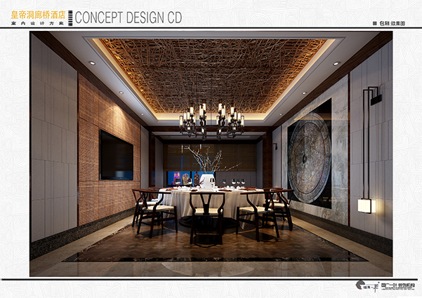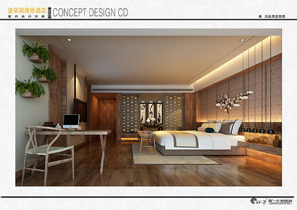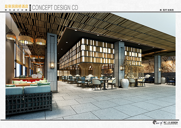 这是一处坐落于福州城郊皇帝洞景区内的主题酒店。透过情境的构图,融入原木、枯藤、青砖、毛石、油纸伞等元素,整合这些充满怀旧感与时代感的自然材质,加上干枯景,水景,柔和的灯带照明,酝酿古今文化水乳交融的和谐与层次,尤其体现原生态景区的特有色调。在客房部分也采用了许多未经雕琢的原生态材质,引入点滴的绿色概念,使旅客在享受优质现代化服务的同时感受到浓浓的原始气息,从而得到全身心的放松。