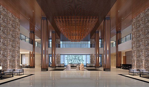 4. 一个居住与自然环境有机结合的高端酒店空间,传达着良好的生活方式理念,山、水、竹、茶、石等天然元素随处可见,以回归自然营造气氛,并通过自然的光影变化来表现建筑活动。